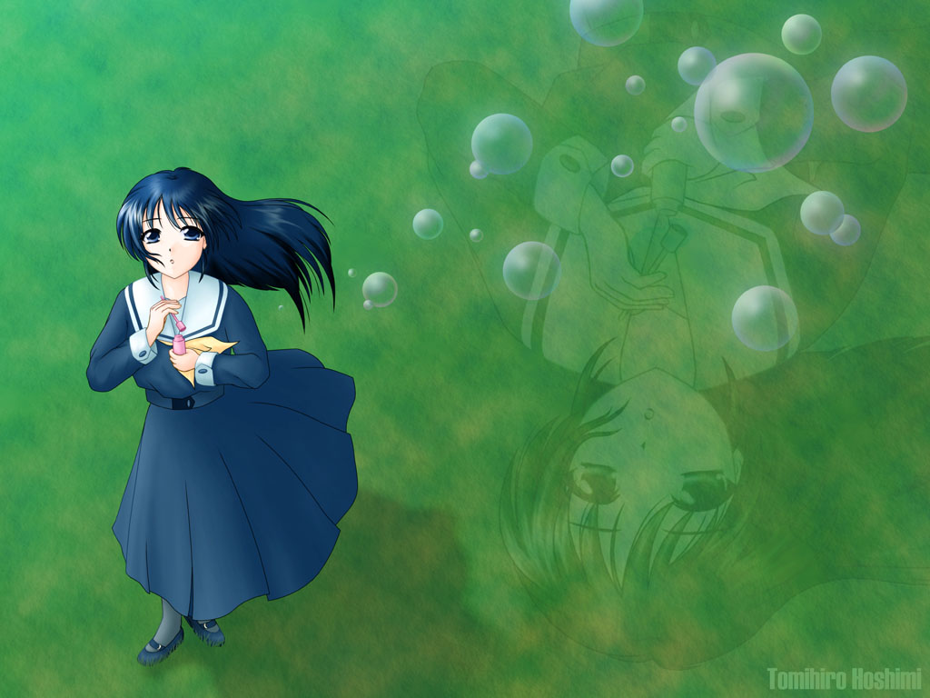 ------------------------------------------------------------------------ 画像形式 JPEG (1024x768 24bit Color 96ppi) 作品名 あの丘の向こうに ------------------------------------------------------------------------ 作製当時の戯言 (笑) 風に吹かれながらシャボン玉を吹く女の子… さわやかさの中に儚さを感じるCGにしたいなぁ…と 思って描いたCGですね。ちょっと全体的に堅くなってしまったのが残念。(^^;;;